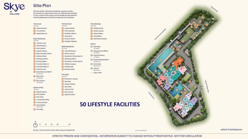 The site plan of Skye at Holland has been thoughtfully designed to balance modern architecture with lush landscaping. The twin 40-storey towers are strategically positioned to maximise natural light and panoramic views, while ensuring privacy for residents.
