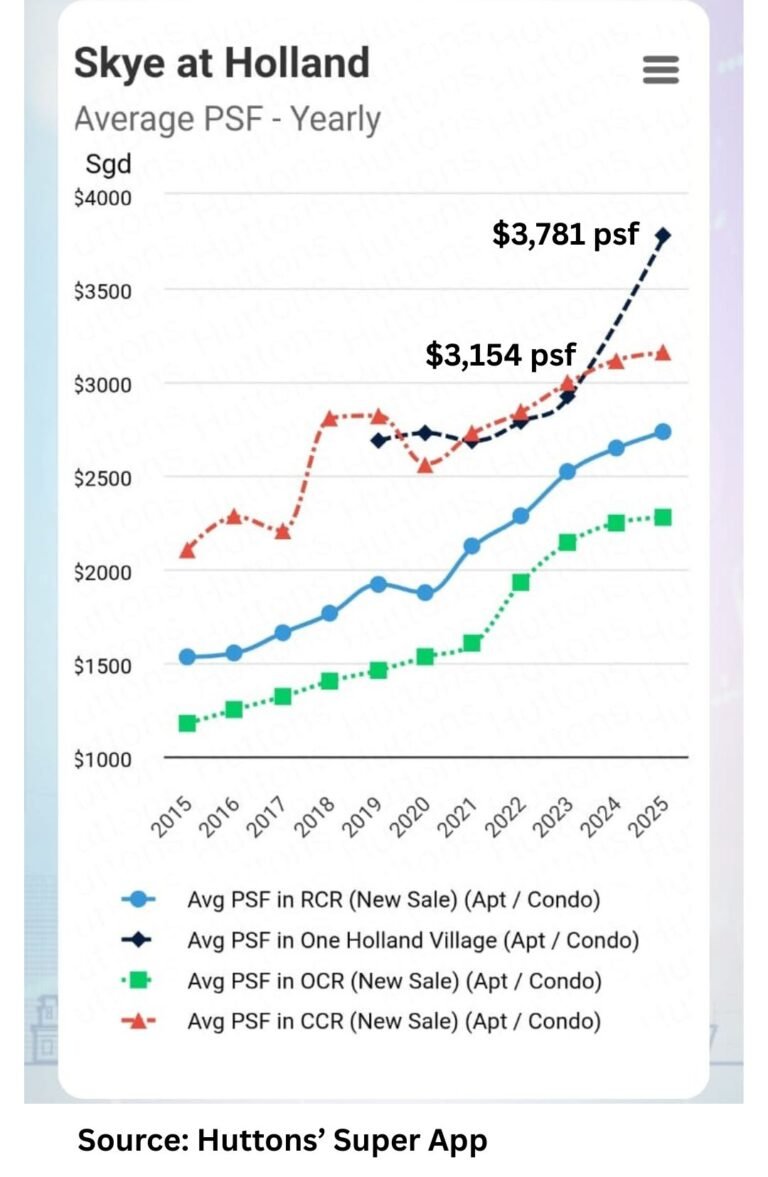 Prices atΒ One Holland Village have surged to $3,781 psf in 2025, significantly outpacing the Core Central Region (CCR) average of $3,154 psf.
